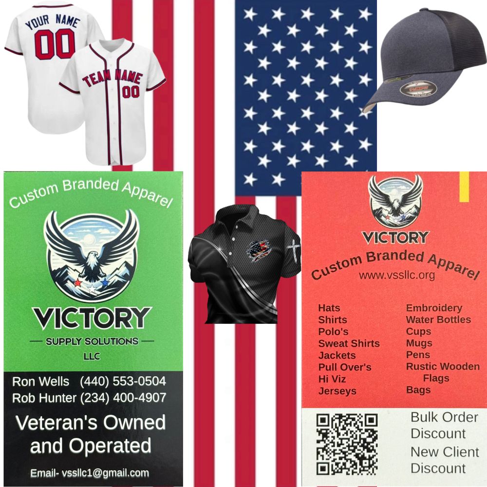 Specializing in embroidered and screen-printed custom apparel, and other branded items. Proudly Veteran owned and operated.